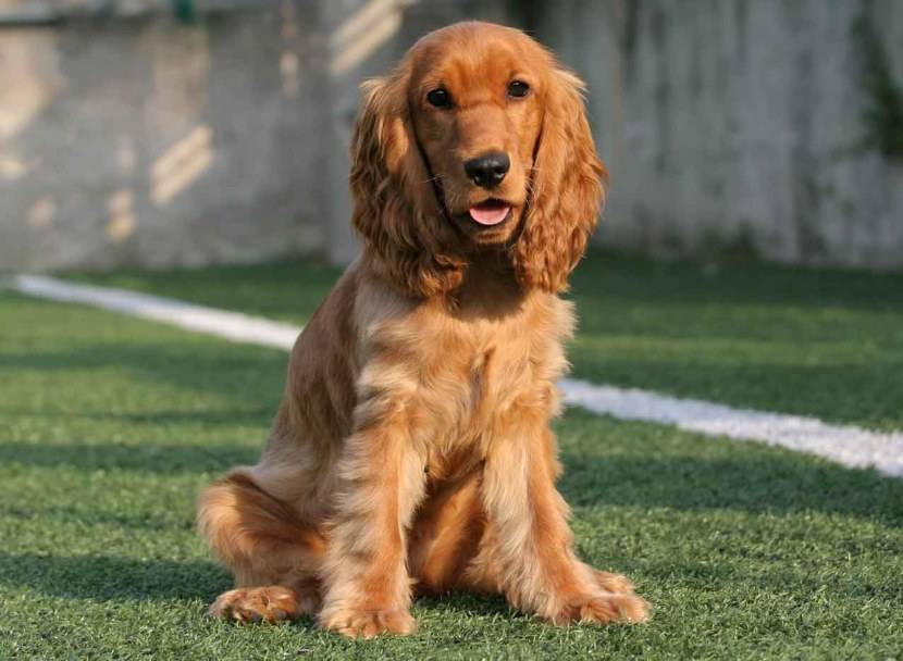 - Английский кокер-спаниель. Собака среднего размера, вес взрослой особи не должен превышать 14,5 кг. Пес очень активен, дружелюбен, имеет длинную шелковистую шерсть. Стандарт допускает любые окрасы, но однотонный цвет не должен иметь белых вкраплений, кроме пятен на груди.
