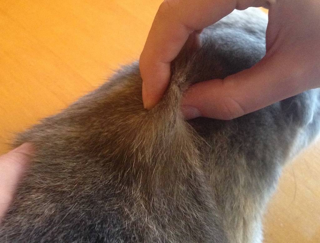 - нанесения антипаразитарных препаратов (например, капель от блох, гельминтов), поскольку эта область тела не доступна коту для вылизывания шерсти языком, поэтому он не отравится токсичным средством при условии правильного нанесения;