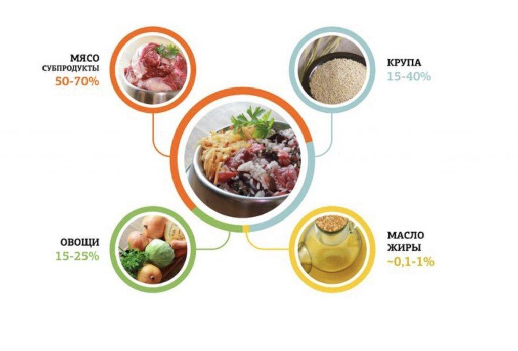 Для того чтобы организовать полноценное естественное питание для пожилой собаки, следует предусмотреть следующий состав рациона:
