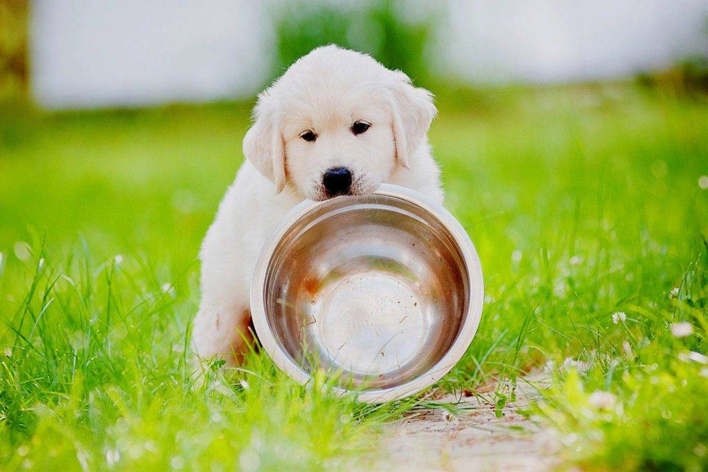 Если у хозяина из-за занятости нет возможности кормить щенка по часам, выход один – нужно оставлять в миске сухой корм, который долго не портится
