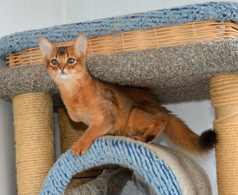 Вот уж для кого имеет значение физическая форма хозяина, так это для Сомалийских кошек. Невероятно активная и жизнерадостная, больше всего на свете она любит играть. Если вы просто хотите погладить кошку, мирно лежащую на коленях, то нужно выбирать питомник с другими котятами.