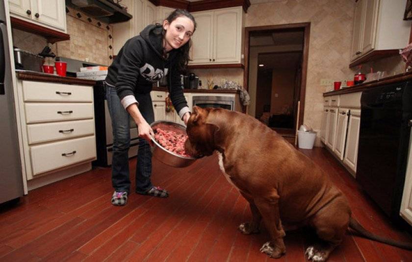 Кормление собаки должны выполнять лишь ее владельцы, чтобы питбуль привык к хозяину и понял, что только он о нем заботится.