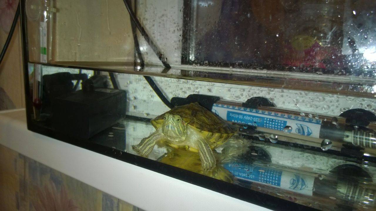 Воду подогревать надо электронагревателями, также необходимо установить помпу с фильтром. Дело в том, что ест и испражняется черепаха в воде, и если не чистить воду, то ее придется менять ежедневно.