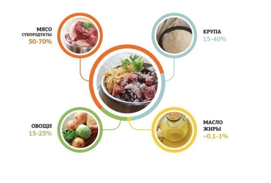 Основу питания взрослого питомца составляют качественные субпродукты и постное мясо. Еще в меню включают: