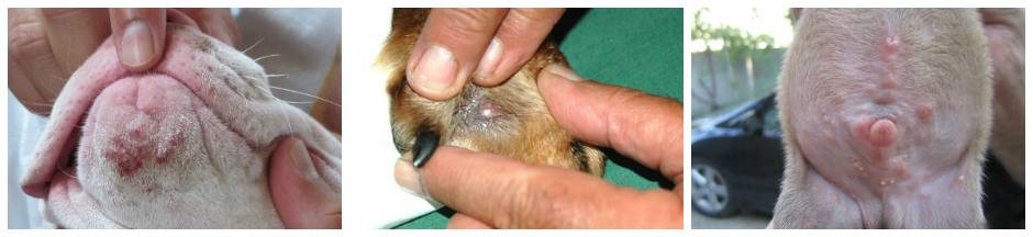 Образование прыщей возможно на любом участке тела собаки, но особенно уязвимыми считаются места, на которые влияют дополнительные негативные факторы: