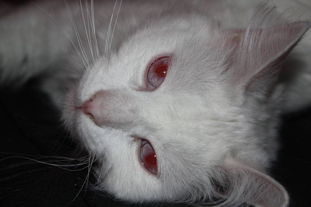 Белые кошки с голубыми глазами — это не альбиносы. Альбинизм выражается в абсолютном отсутствии пигмента. У таких кошек не только белая шерсть, но и красные глаза, а кожа под мехом всегда прокрашена в розовый цвет. Голубой же цвет глаз свидетельствует о том, что пигмент есть — он и окрашивает радужную оболочку глаза.
