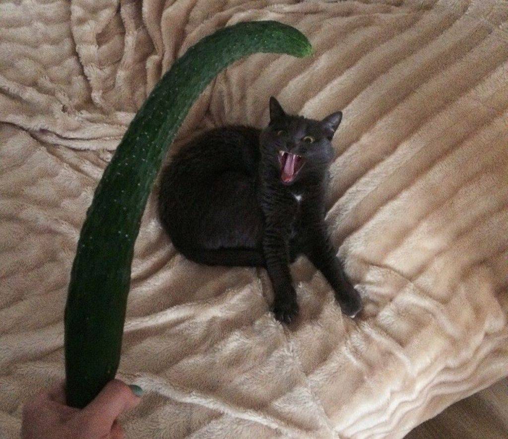 Боятся ли кошки огурцов