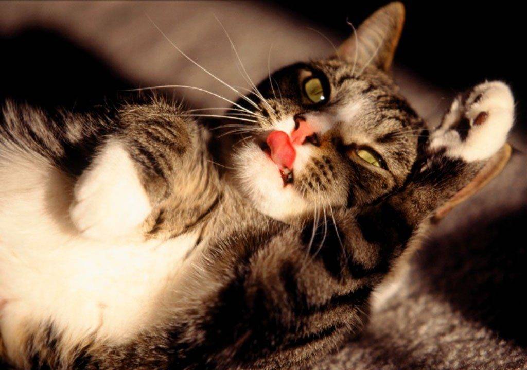 Еще одна причина, почему кошки высовывают кончик языка — умывание. При вылизывании шерсти питомец зачастую находится в расслабленном состоянии, поэтому кошачий язычок становиться более длинным и может даже немного выпадать изо рта. Но это происходит не только во время самой процедуры, но и по ее окончанию. Кошечки иногда настолько глубоко погружаются в процесс умывания, что попросту забывают о своем язычке.