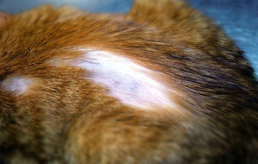 При грибковых инфекциях (микроспория, трихофития) на проплешинах можно заметить небольшие ранки, струпья, корочки. Если у животного чесотка, то, помимо алопеции, можно наблюдать покраснение кожного покрова, а в особо тяжелых случаях и гноеродное воспаление.