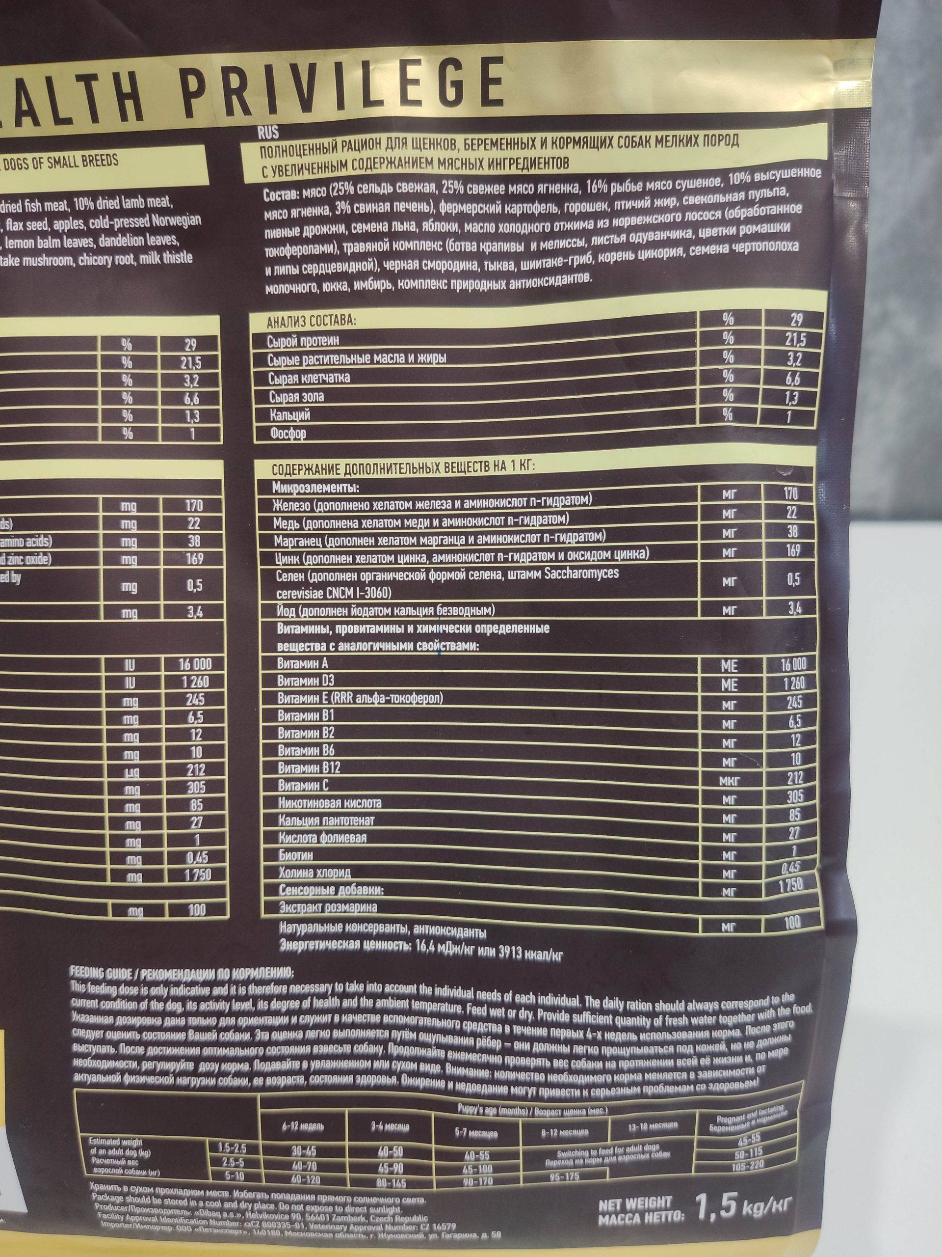 Второе и третье места — фермерский картофель и горошек, выступают источниками углеводов. Птичий жир, масло холодного отжима из норвежского лосося — источники жиров и жирных кислот. Уточнено, что масло лосося сохранено с помощью токоферолов (по сути витамин E).