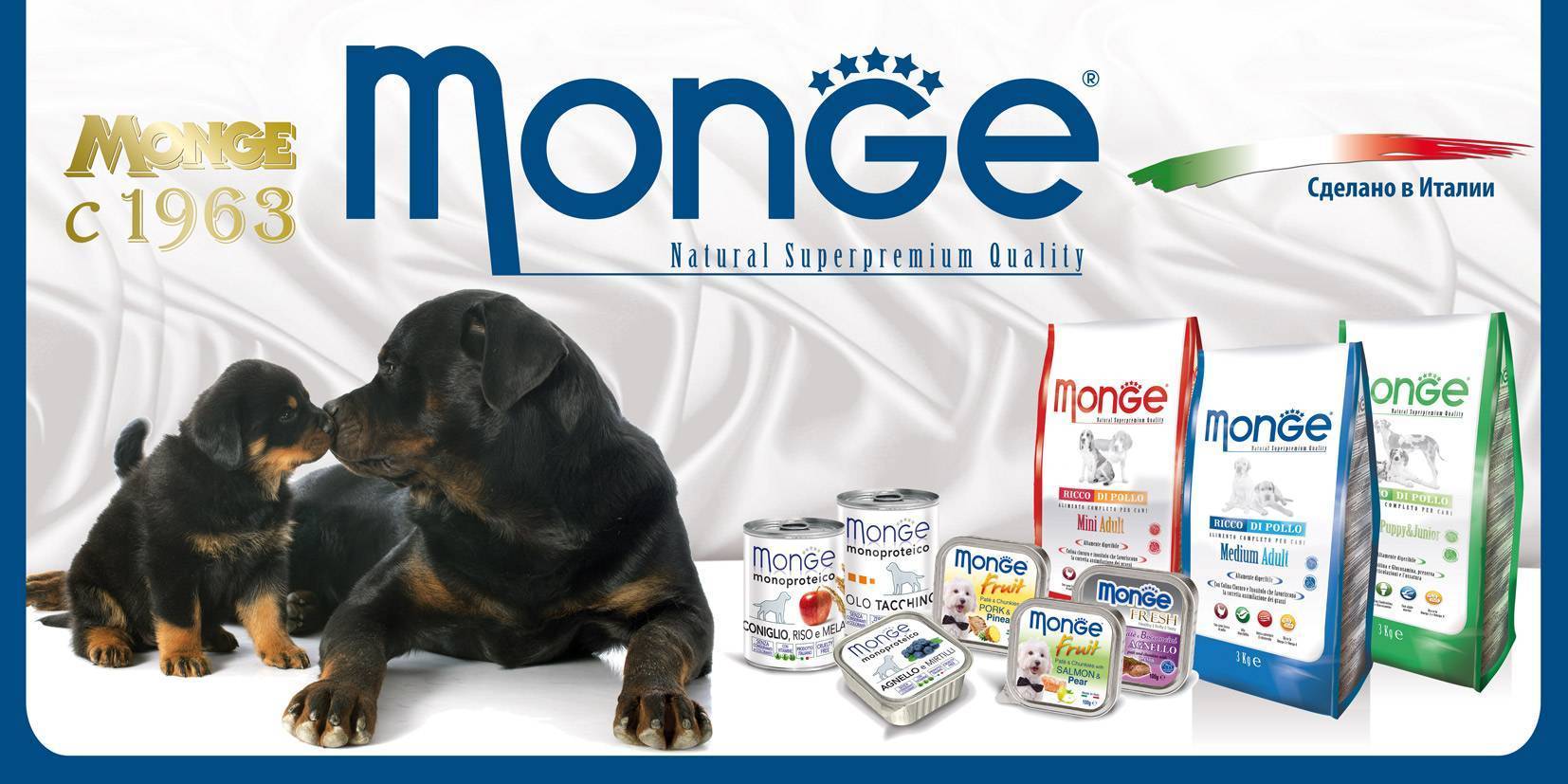 Продукция итальянской компании относится к кормам суперпремиум класса. Это позволяет говорить о наличии в их составе натурального мяса в большом количестве. Состав кормов идеально сбалансирован. На российском рынке корм «Монже» для собак появился несколько лет назад, но его регулярные поставки стали осуществляться совсем недавно. Благодаря этому популярность итальянских кормов стремительно возросла.