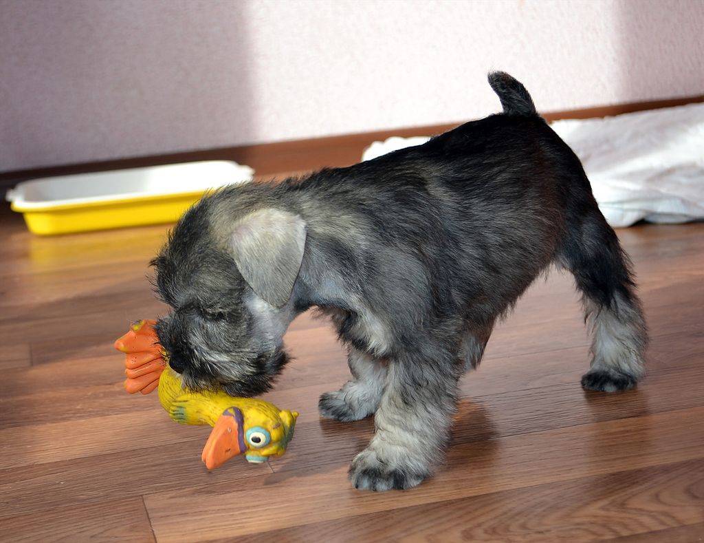 Приучать к «туалетным делам» на улице щенка ризеншнауцера нужно как можно раньше, он и сам не особо приветствует лотки с газетами или песком.