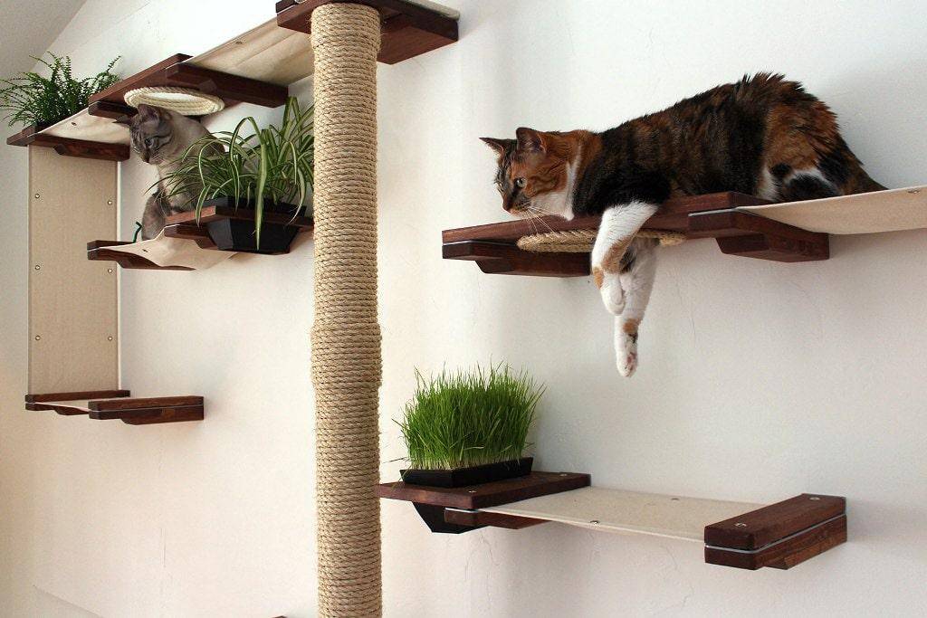 При желании вы можете оборудовать кошачье место для отдыха, здесь понадобятся специальные домики, игрушки, лежанки и т.д.