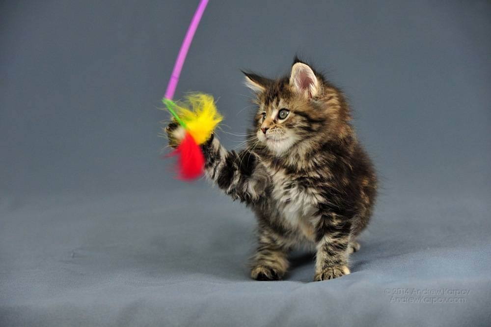 Разумеется, котенок в любом случае останется хищником, которому нужно отрабатывать свои охотничьи навыки. В стесненных домашних условиях ему понадобятся для этого специальные игрушки. Изготовленные из экологически чистых, безопасных материалов мячики, перышки и мышки продаются в любом зоомагазине. Можно сделать игровой инвентарь самостоятельно.