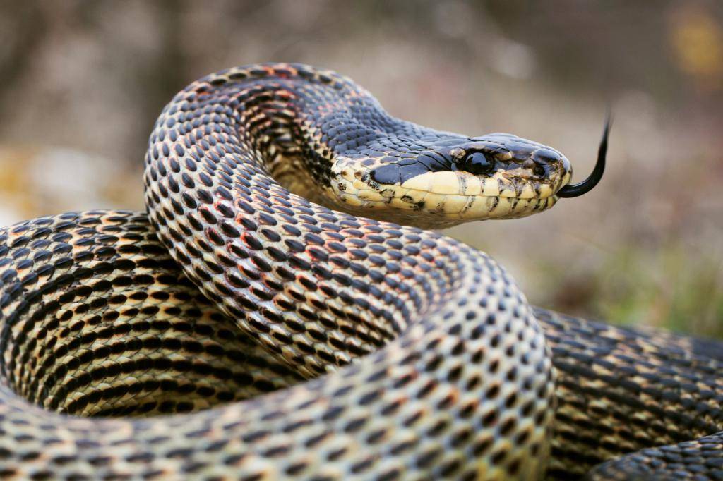 Итак, верхняя часть змеи имеет темный окрас, который может меняться от серого до коричневого, порой даже до черного цвета. В целом подобные изменения зависят от среды обитания змеи, ведь для нее кожа – это природный камуфляж, способный скрыть ее от добычи. Поэтому не стоит удивляться тому, что представители одного вида могут быть как серого, так и черного цвета.