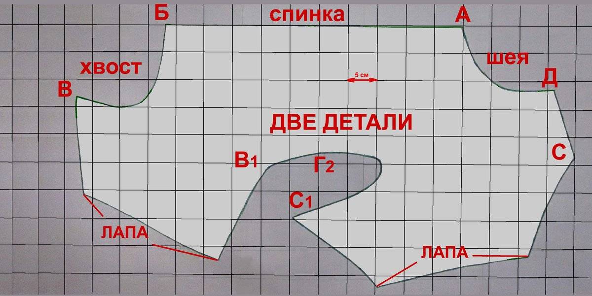 - Затем на полученной схеме нужно отложить линии, определяющие обхваты лап.