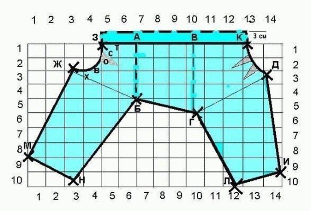 - Теперь нужно по такому же принципу построить «заднюю» часть выкройки.