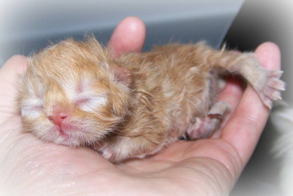 В период 2-3 недели котята более активно передвигаются в гнезде и пытаются вставать на лапки. Так как у котят от рождения длинные тонкие коготки, острые как иголки, они могут случайно повредить друг другу глазки. Чтобы этого не случилось, после второй недели жизни коготки лучше подрезать, но только прозрачную часть когтя.