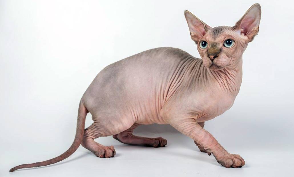 Донской сфинкс. Бесшерстная кошка с изящным туловищем, большими ушами, голубыми или зелеными глазами. Сфинкса можно заводить даже аллергикам, это очень добродушное, но в то же время подвижное и игривое животное!