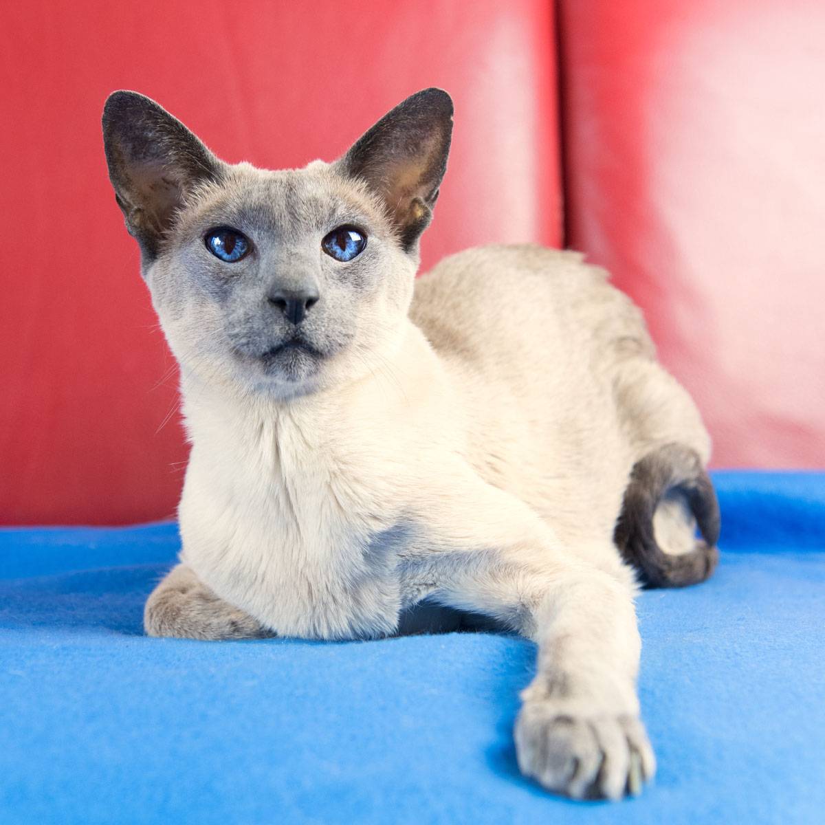 Сиамская. Характерные голубые глаза, изящный профиль, крупные ушки. Окрас – бежевое туловище, черная или шоколадная «маска» на мордочке, темные лапки и хвост, кончик которого обычно слегка загнут кверху. «Сиамцы» могут хорошо ловить мышей, однако, вопреки стереотипам, они не агрессивны – просто игривы до старости!