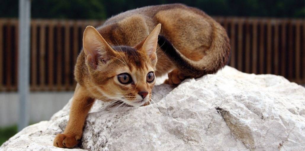 По праву первое место в нашем рейтинге занимает абиссинская кошка: она готова бегать за мышкой весь день, у неё веселый характер – с этим домашним питомцем скучно не бывает. Абиссинская кошка всегда «гиперактивна» и никогда не устаёт – если в помещение залетит бабочка, она будет носиться за насекомым, пока его не поймает (даже если это займёт несколько часов).