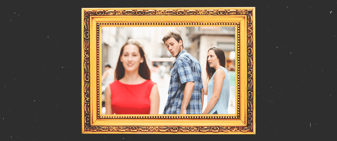 Неверный парень — один из самых популярных мемов. Фотография, на которой чувак заглядывается на проходящую мимо девушку, в то время как идет за руку со своей спутницей, стала использоваться во всех отношениях — лавбрендах, политики и многих других.