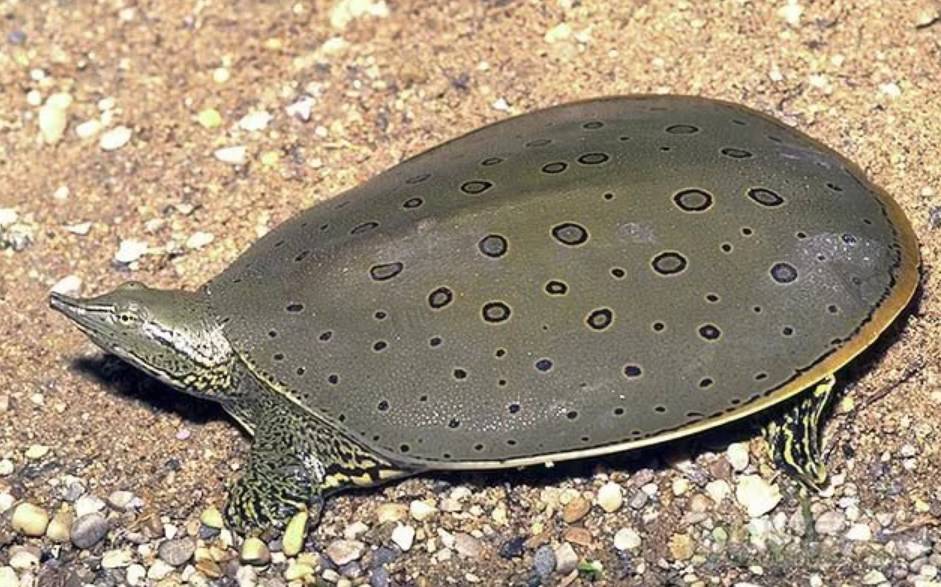 Это необычные аквариумные черепахи, которые являются исключением из правил. Дело в том, что у рептилии этого вида вместо прочного и жесткого панциря имеется мягкая фактура. У этой части тела нет щитков и различных твердых элементов, она полностью состоит из кожи.