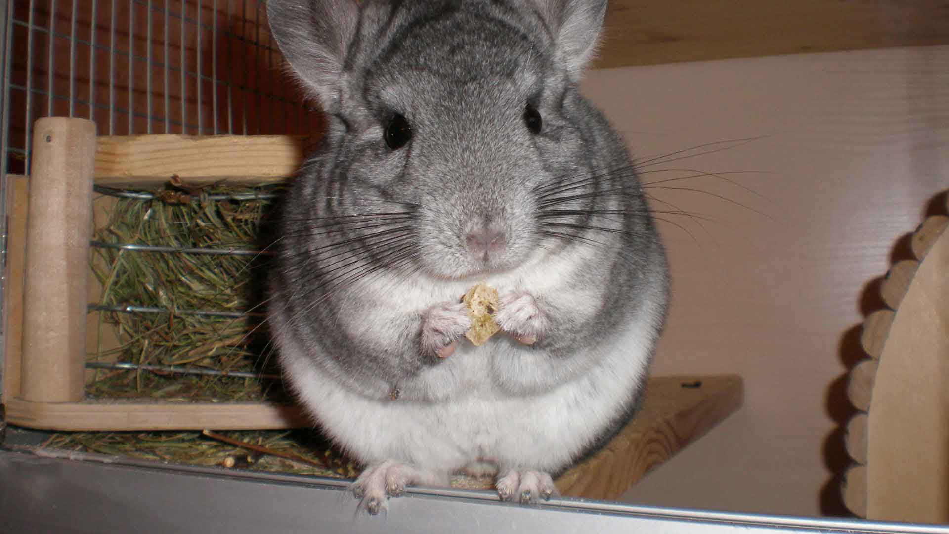 Кормить шиншиллу следует 1 раз в день. Еда и вода всегда должны быть свежими. Воду следует давать фильтрованную или кипяченую. В клетке всегда должен быть специальный камень для стачивания зубов, который можно приобрести в любом зоомагазине.