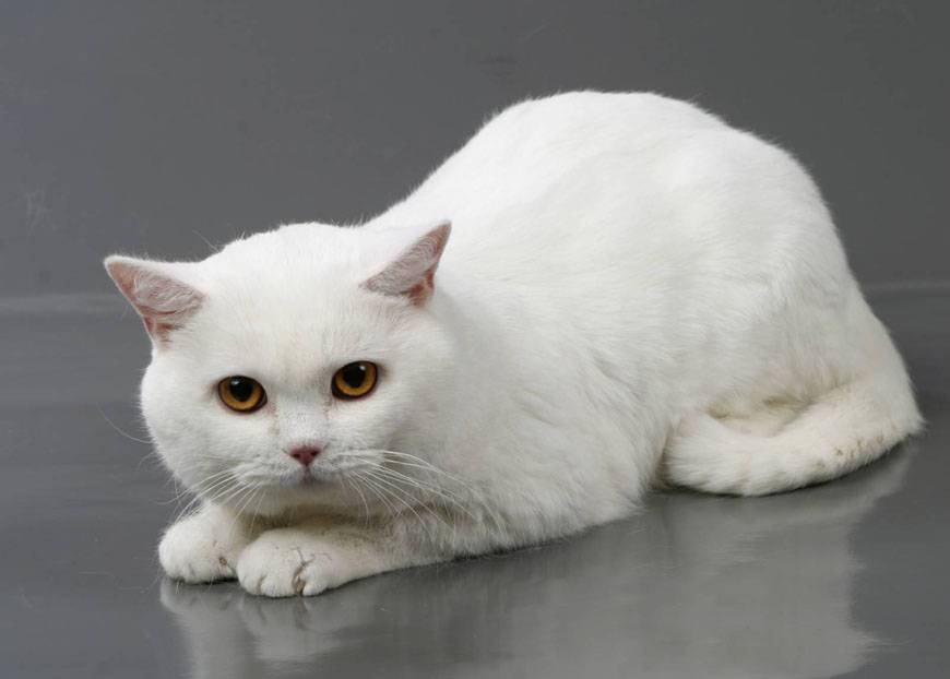 На самом деле, белые кошки этой породы очень редки. Сочетание окраса и жёлтого цвета глаз в облике британца создаёт строгое и даже немного напряжённое впечатление. Разноцветные глаза (сапфир и золото) встречаются среди представителей этой породы и вовсе не часто, но возможны.