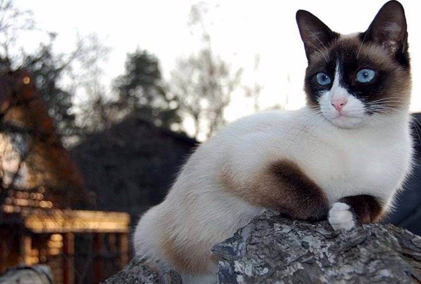 Эта порода называется так за счет беленьких лапок (ведь дословно Snow shoe переводится как «снежная обувь»). Порода довольно редкая, отличается, кроме упомянутых светлых носочков, также сиамским окрасом, голубыми глазами и непредсказуемостью личных качеств.