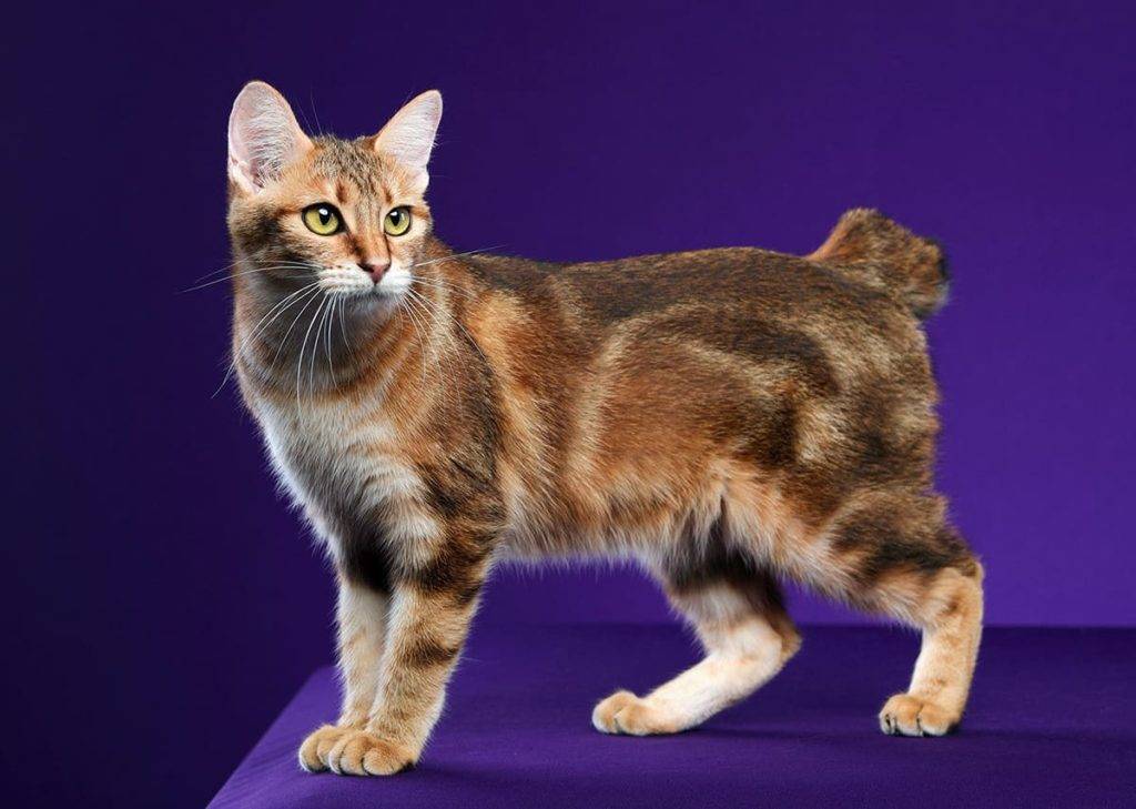 Внешне этот симпатичный бесхвостый полосатик схож с Пиксибобом. Американские бобтейлы – потомки от скрещивания представителей Сиамской породы с индейскими котами.