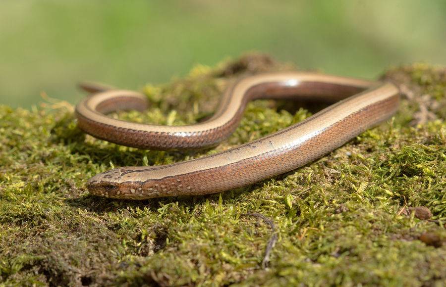 - Но если присмотреться, то можно увидеть массу отличий. В наших широтах в основном распространены веретеницы с медовым окрасом спинки и двумя узкими, темными полосками.