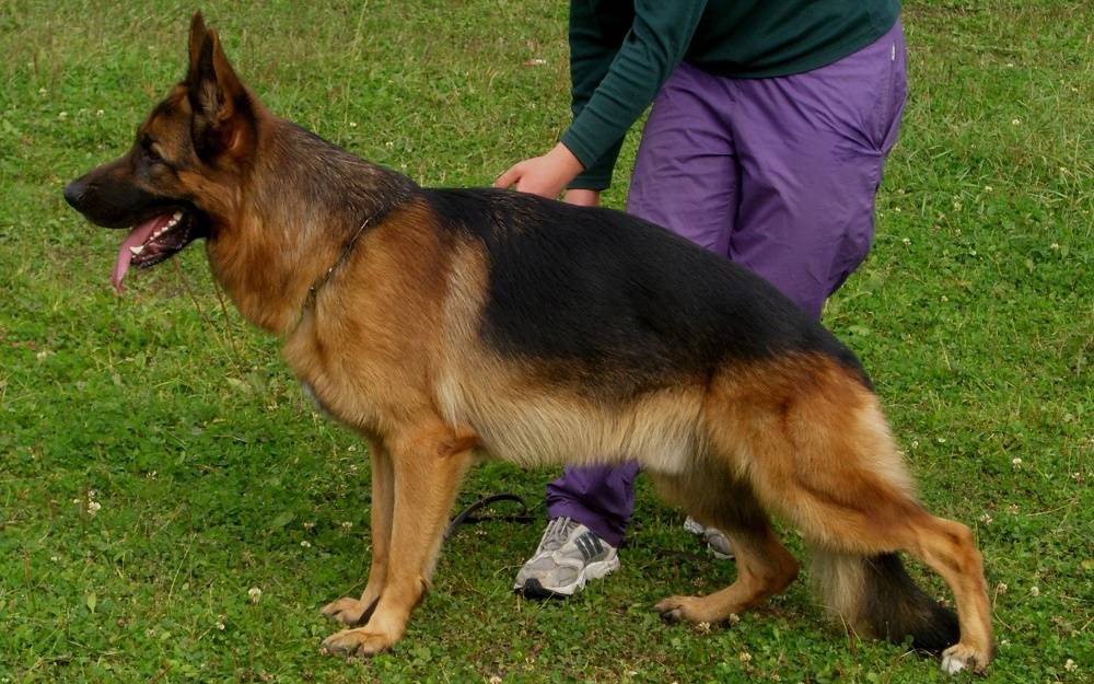 Волос немецкой овчарки должен быть твердым и прямым. На передних конечностях, голове и внутренней части ушей – шерсть короткая и редкая, на шее – длинная и густая. На задних конечностях шерсть постепенно удлиняется до скакательного сустава.