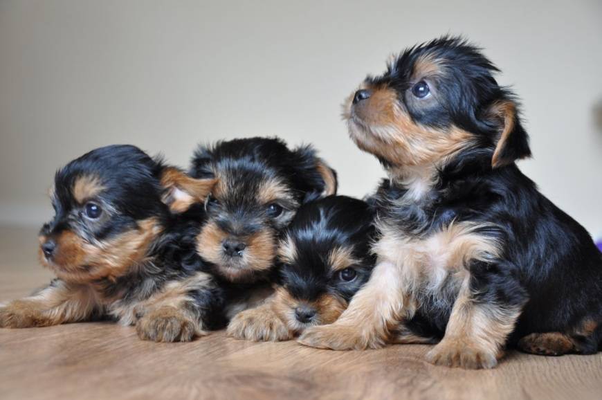 Малыши йорки приходят в этот мир совершенно слепыми и глухими, способными только чувствовать запахи и вкусы. Первое время весь уход за пометом берет на себя мать. Все, что требуется от малыша, это активно захватывать мамину грудь, сытно есть и долго спать.
