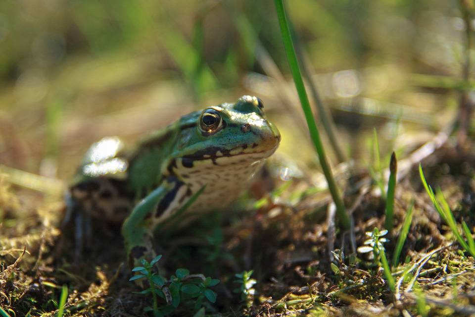 - Прудовая лягушка – это симпатичный обитатель водоемов, которого можно встретить не только на территории России, но и за её границами. Исходя из названия такой лягушки, несложно догадаться, что место ее обитания являются водоемы. Такие виды лягушек отличаются неприхотливостью в выборе озера, пруда или реки. Данное существо может поселиться в любом водоеме, где присутствуют кувшинки и еда. Размеры тела такой лягушки достигают 10 см. Ее зеленовато-желтая кожа покрыта коричневыми пятнышками. Интересные особенности такого земноводного представителя заключаются и в том, что по центру его спины идет узкая полоса. Необыкновенной видовой чертой считается и его прекрасный слух.