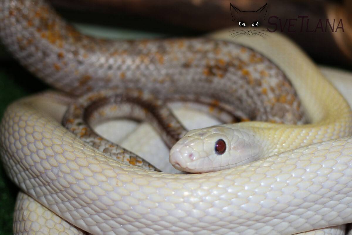 Как называется белая змея? Ещё на название змеи-это белый крысиный полоз. Подобная формулировка напрямую связана с его рационом питания и некоторым внешним сходством с грызунами. Данная разновидность рептилий считается очень редким видом.